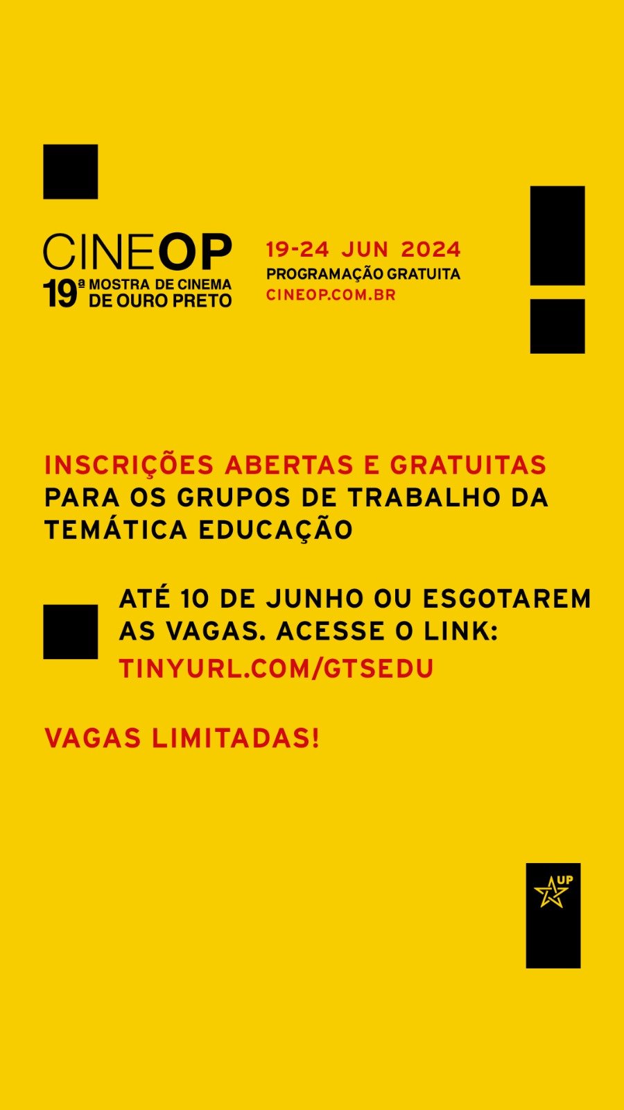 Até 10 de junho ou esgotarem as vagas.